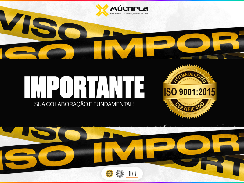 Informamos que, no próximo dia 13 de fevereiro (sexta-feira), será realizada a auditoria interna da ISO (Organização Internacional de Normalização). Este é um procedimento obrigatório pelo qual a Associação Múltipla passa anualmente para verificar a conformidade de nossa instituição aos requisitos de qualidade das normas ISO 9001.